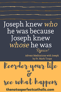 This Advent, I am using the book Rejoice! Advent Meditations with Joseph by Fr. Mark Toups. This book is proving to be extremely powerful in not only getting to know Joseph better but also in doing some real soul-searching. One entry, in particular, laid heavy on my heart. I've thought of it before, but seeing it on paper helped me to understand what I've been feeling and what I am called to do.